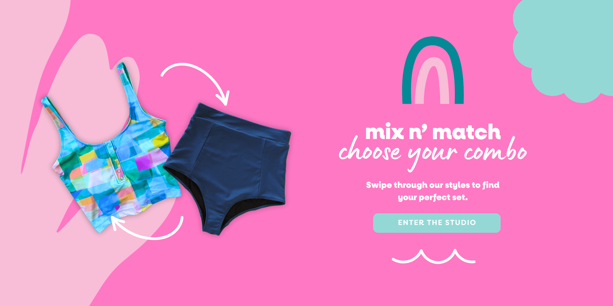 I haven’t worn swimmers for a long time without boardies and black, decided to be brave and wear colour , flowers and not care.😁 Love that you can mix and match.
